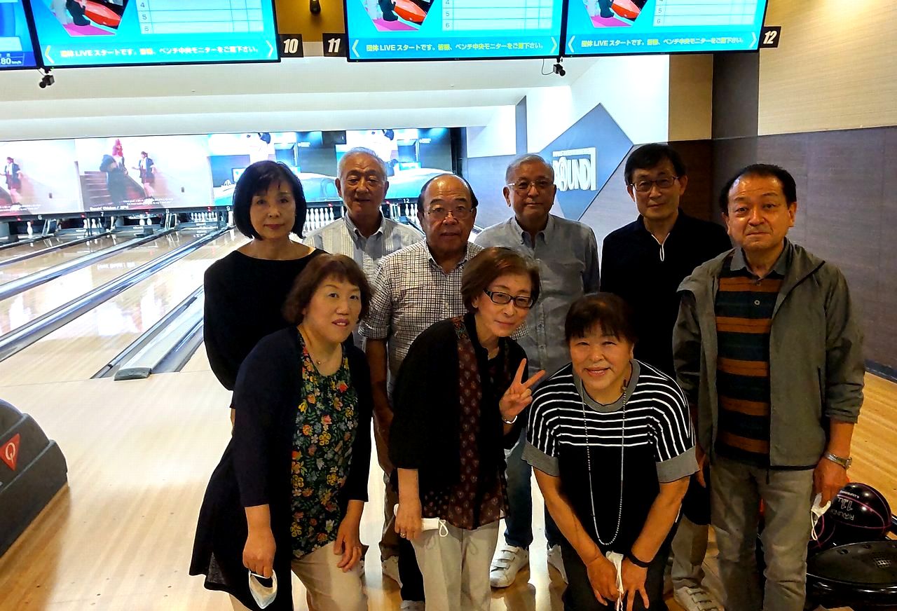 新型コロナで長らく開催できていなかったボウリング同好会ですが、ようやく開催できました。この日は9名がラウンドワン梅田に集合し2ゲームを楽しみました。みんな久し振りのボウリング(中には〇十年振りという方も)で、またマスク着用、ストライクやスペアの時もグータッチと感染対策をしっかり行いながらのプレイでしたが、全員大いに楽しみました。(^^)/・・〇〇