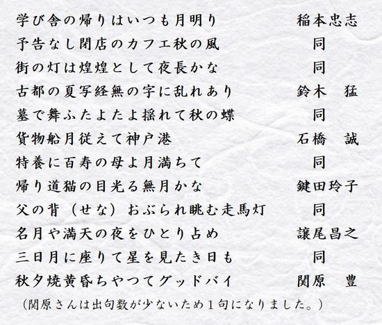 投句参加:鍵田玲子、稲本忠志 総計 6名