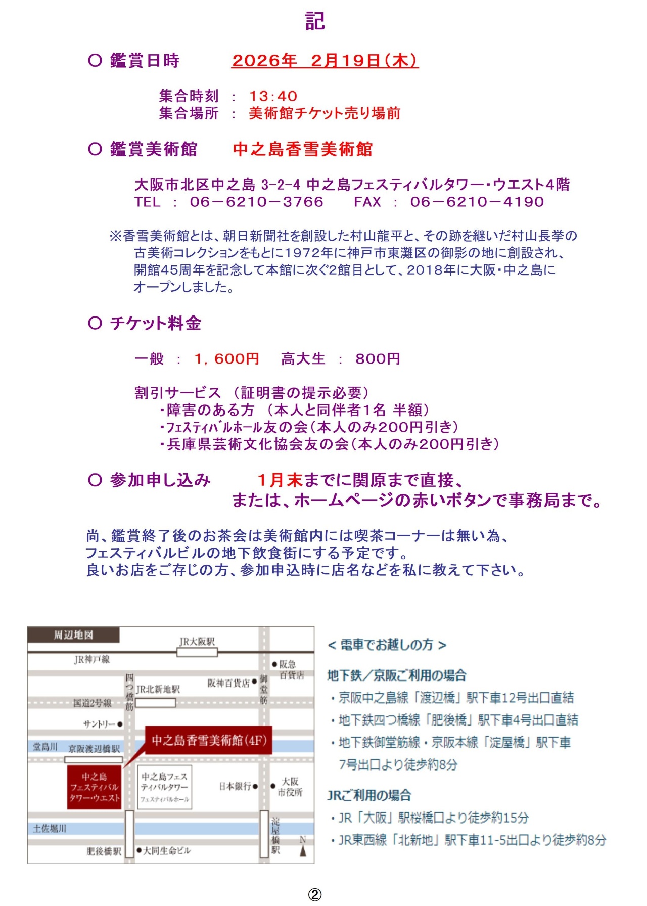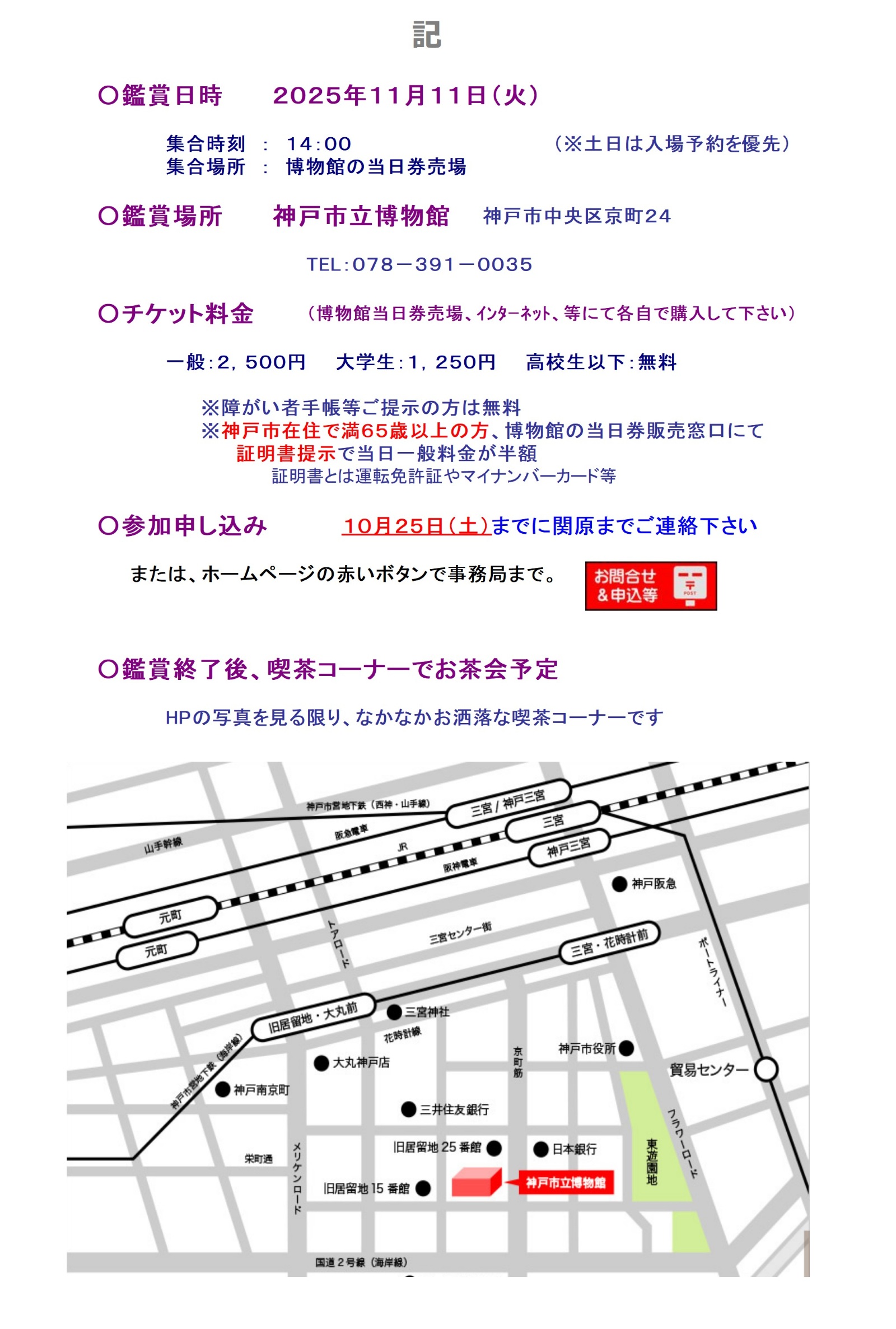 中之島香雪美術館は地下鉄「肥後橋」すぐそばの便利なところにありますし、展示される作品は有名なものになりそうなので、お試し参加をお待ちしています。