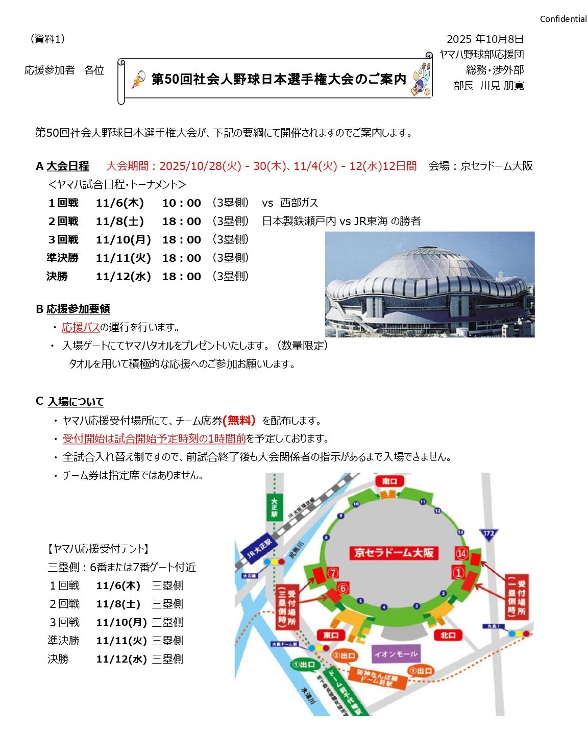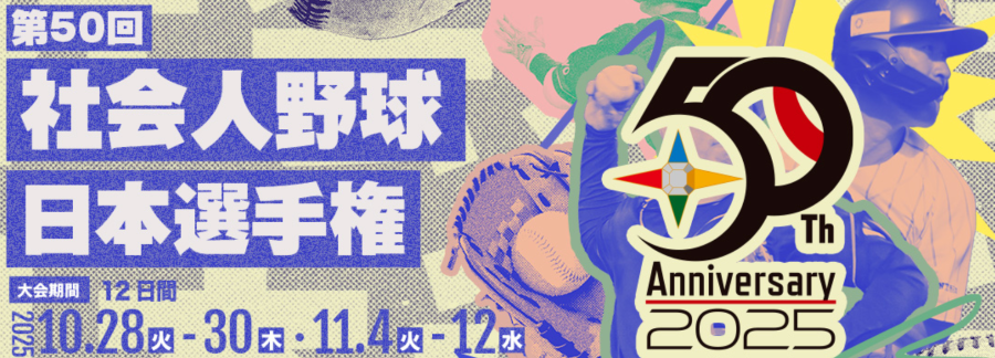 9月の都市対抗野球では残念ながら準決勝で王子に敗れましたが、今年のヤマハは投打共にパワーアップしていましたね!そして、大阪の京セラドームで開催される「社会人野球日本選手権」は記念すべき第50回です!
