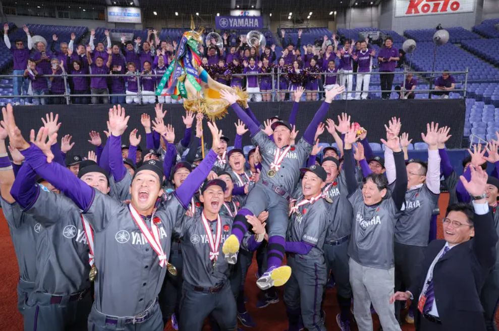 しかし、先発の佐藤 廉が最後まで投げ切り、2-1のままヤマハが優勝しました!!!