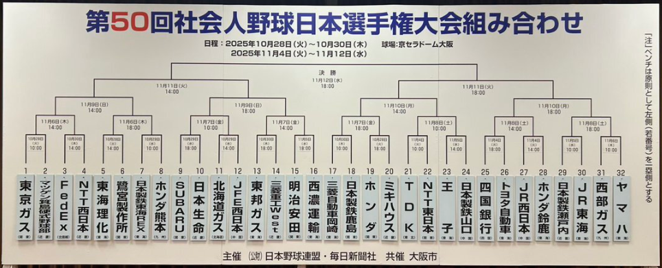 【第50回社会人野球日本選手権 ヤマハ試合日程】