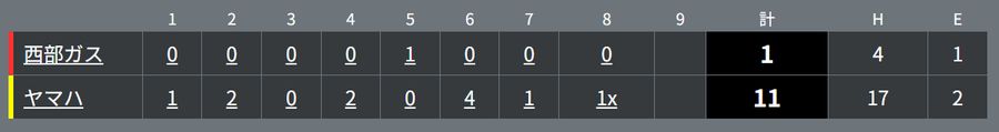 11月6日(木)の朝10時から京セラドームで行われた「第50回社会人野球日本選手権」のヤマハ ✕ 西部ガスの1回戦ですが、ヤマハの打線が爆発し11点の大量得点!守っては先発佐藤の好投で西部ガスを1点に抑え、8回コールドで圧勝しました。おめでとうございます!今年のヤマハは強いです!