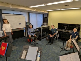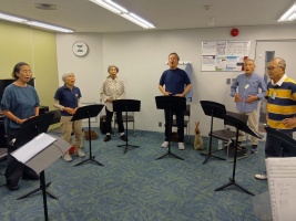 サークル発足以来「ヤマハミュージックアベニュー梅田」でのレッスンだったが、コロナのために教室定員が半数となり、全員が入室できないために活動を休止していた。ヤマハの定員規制がまだ変わらないので、コロナが落着いている現在、一刻も早く声をだして歌いたいというメンバーの強い要望で自主開催をすることになった。講師はOB会事務局長古橋さんの奥様に引き受けて頂いた。
