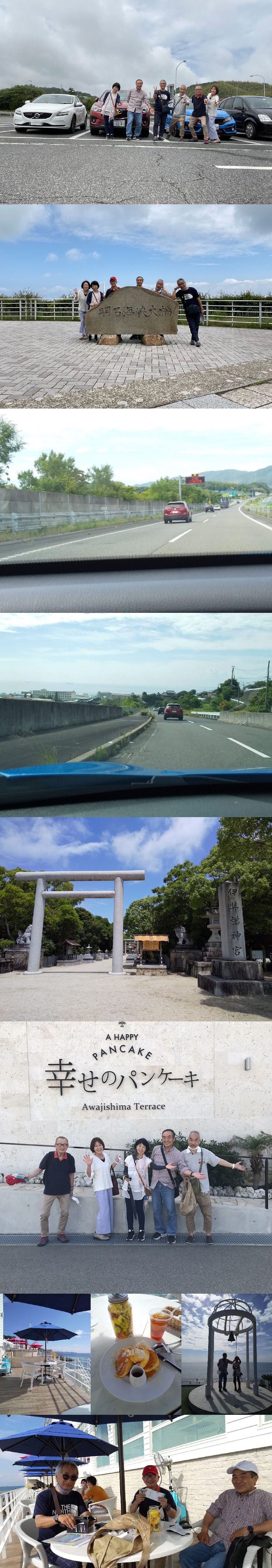 今回は昨年に続き第二回目の実施。当番幹事を務める上嶋さんの計画に沿って集合地点を淡路サービスエリア大観覧車前にて4台6名が合流。明石海峡大橋をバックに集合写真をパチリ!
