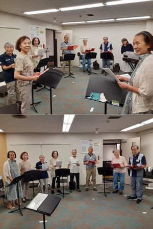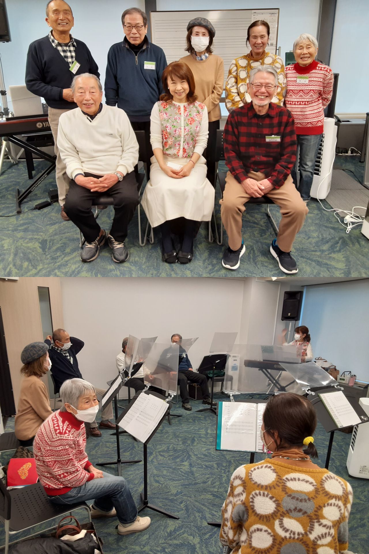 サークル発足以来「ヤマハミュージックアベニュー梅田」でのレッスンだったが、コロナのために教室定員が半数となり、全員が入室できないために活動を休止していた。ヤマハの定員規制がまだ変わらないので、コロナが落着いている現在、一刻も早く声をだして歌いたいというメンバーの強い要望で自主開催をすることになった。講師はOB会事務局長古橋さんの奥様に引き受けて頂いた。