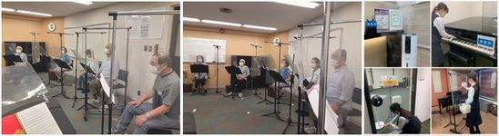 安全対策 会場は定員50名の広い部屋、マスク着用して歌う、室内換気、手指消毒など。