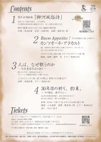 1部のメインは「シェイクスピア・ピクチャーズ」。2部は皆様よくご存知の楽しい曲や懐かしい曲をご用意いたしました。是非多くの方に聴いていただければ幸いです。』