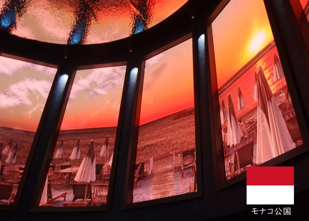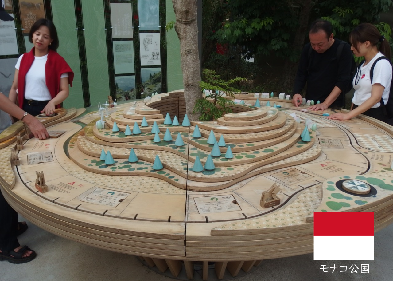 比較的行列の少な目な「モナコ公国パビリオン」に取り敢えず並びました。しかし、なかなか列が進みません。どうやら中で環境問題の長めのコンテンツ上映があるようです。それでも1時間近く待ってやっと入場。1階のシアターで「モナコの自然や風景」をテーマにした短い映像を5分ほど鑑賞。しかし!この後は2階のシアターで本番のコンテンツ上映まで1時間待ちとのお達しが・・仕方なく、モナコ館の他の展示をサラっと見て退場。