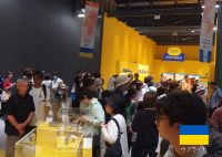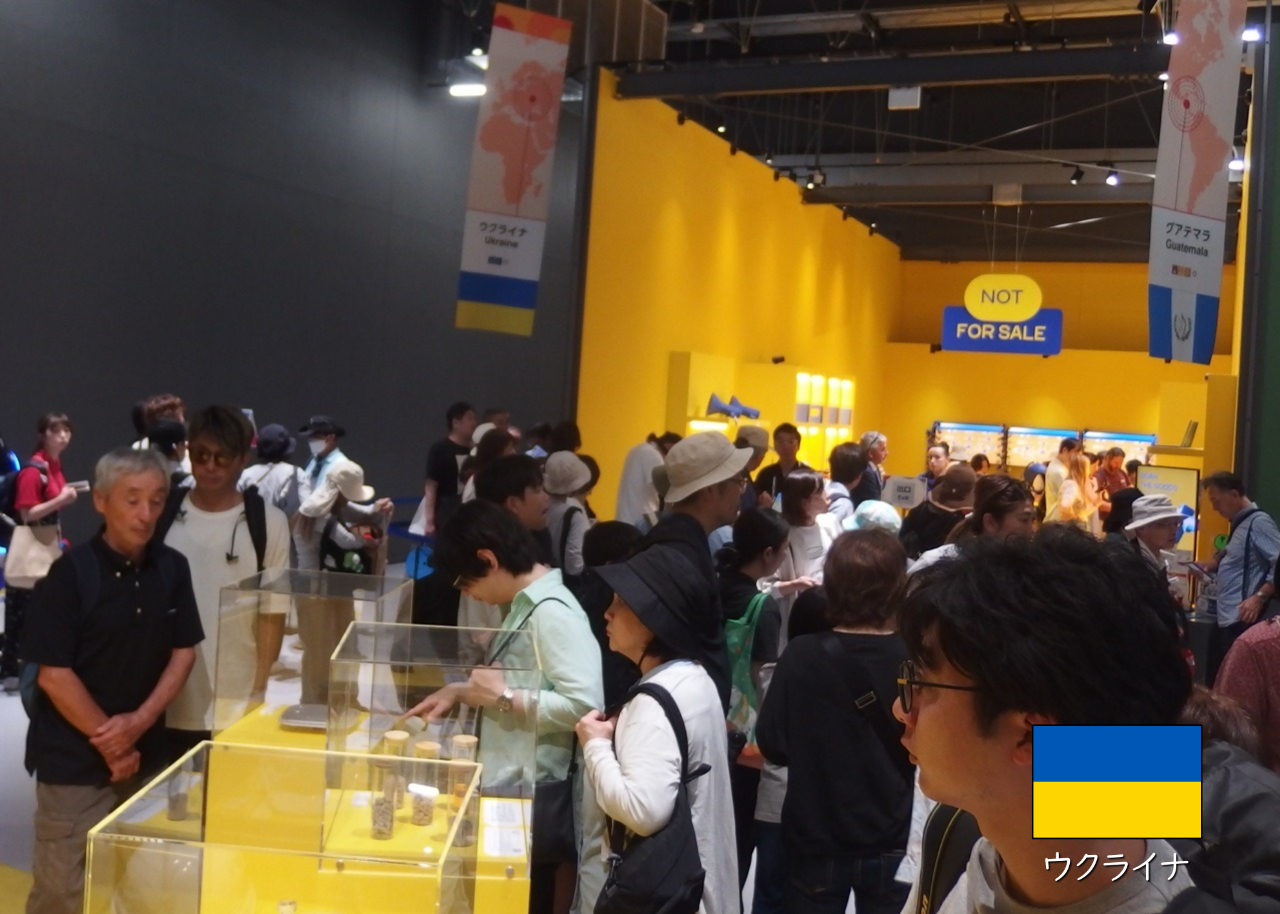 今回どうしても見たいと思っていた「ウクライナ」のある「コモンズC」に並ぶも、ここでも1時間弱の行列。やっと入館してウクライナ・ブースの行列に並ぼうとしたら「1時間待ち」の表示が・・・!