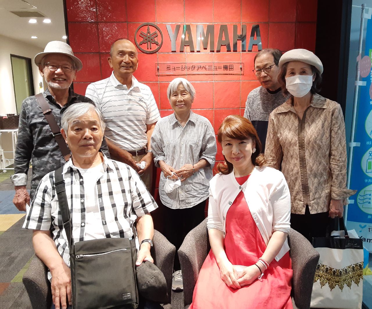 サークル発足以来「ヤマハミュージックアベニュー梅田」でのレッスンだったが、コロナのために教室定員が半数となり、全員が入室できないために活動を休止していた。ヤマハの定員規制がまだ変わらないので、コロナが落着いている現在、一刻も早く声をだして歌いたいというメンバーの強い要望で自主開催をすることになった。講師はOB会事務局長古橋さんの奥様に引き受けて頂いた。